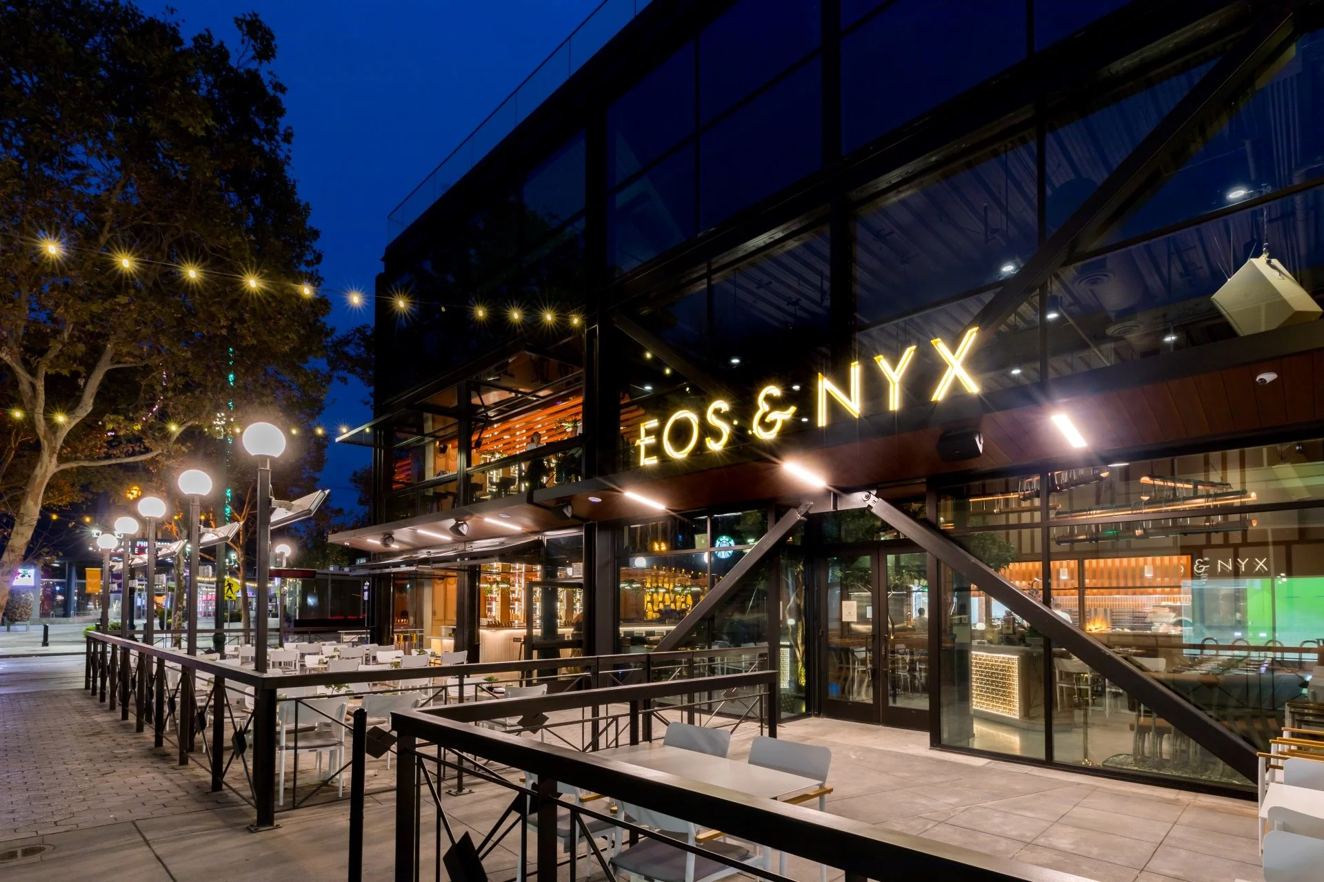 EOS and NYX is a Bay Area destination dining experience. As Architect of Record, Manu Studios worked with renown restaurant designer Basile Studio to bring this project to reality. The custom designed and fabricated rotating bottle shelving, the scalloped ceiling, custom banquettes, tables, chairs and stools, along with the stair/mezzanine railings are all signature design elements that are harmoniously weaved into this elevated dining experience for Silicon Valley patrons. Manu Studios worked closely with Basile Studio, the GC and Client to create this truly unique dining and cocktail experience rooted in the sublime.